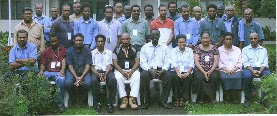 TMG-C Member and Consultant Dr Joe Tabe (seated, 5th from right in glasses) with engineering trainees in Papua New Guinea