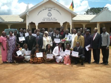 2007 to date: BUST: Community Capacity Building and Advancement of Education. The Client is the fledgling Bamenda University of Science & Technology (BUST), Cameroon - with no Government funding. TMGF provided strategic consultancy in situ - on the ground in Cameroon with the Senate and Staff - covering priorities, debt refinancing, break even business planning and Diaspora contributions. Cameroon is in dire need of more capacity in tertiary education. Lectures covering these topics were delivered to University staff and students. Needs: infrastructure, monies, etc. TMG-F provided some significant funding to finishing the main building (we have a plaque there proudly), as well as fund a scholarship scheme at BUST (see picture above).